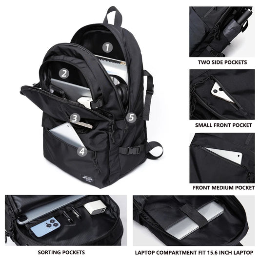 2. Two side pockets can put water cup umbrella;3. Laptop compartment can hold 15.6 inch laptop