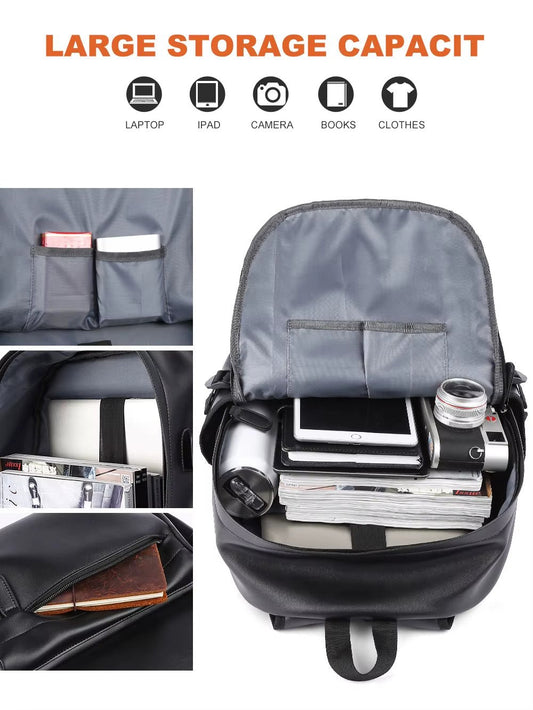 Specification Main Material PU Leather Brand Name MOYYI Model Number 5738 Lining Material Polyester Capacity Below 24 litre Product name Laptop Backpack Bag Logo Customized Logo Accepted Size 29*15*42CM Weight 0.85kg Function 1: Wear-resistant and scratch-resistant waterproof PU leather 2: Built-in main pocket, dark zipper pocket, computer compartment main pocket can be placed 14 inch laptop large capacity to meet the daily travel storage. 3: the back of the pearl cotton thickened back pad, breathable and comfortable, wider, thicker breathable pearl cotton shoulder straps, reduce travel back pressure 4: The front compartment structure classification bag, items categorized to take more quickly. 5: Trolley sleeve on the back Quality 100% QC Passed Product Description Packing & Delivery To better ensure the safety of your goods, professional, environmentally friendly, convenient and efficient packaging services will be provided. Company Profile ...