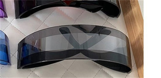 These innovative visor-style sunglasses feature a sleek clear frame accented with MCROONS vibrant red and blue LED lights, creating a futuristic and eye-catching look. The transparent lens adds to the modern aesthetic, making them perfect for festivals, nightlife, or themed events.