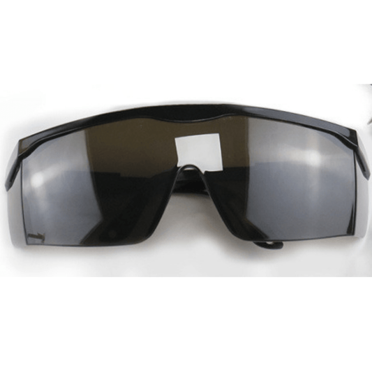 MCROONS Protective Glasses have a durable black frame and dark gray lenses for glare reduction and UV protection; their wraparound design ensures comprehensive eye coverage while blending safety with a modern aesthetic.