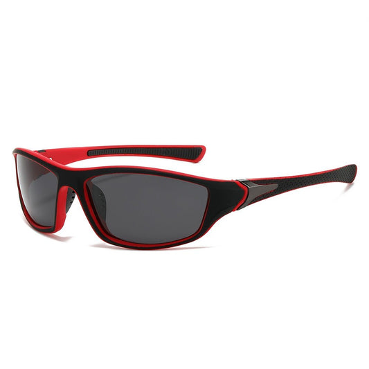 MCROONS sunglasses feature a sturdy wraparound design with a matte black frame enhanced by bright red accents. The dark gray lenses provide excellent UV protection and reduce glare, making them ideal for outdoor sports and activities. Their ergonomic fit ensures comfort during prolonged wear, making them a great choice for those who value both style and performance. With a modern aesthetic and durable construction, these sunglasses are perfect for any adventure.