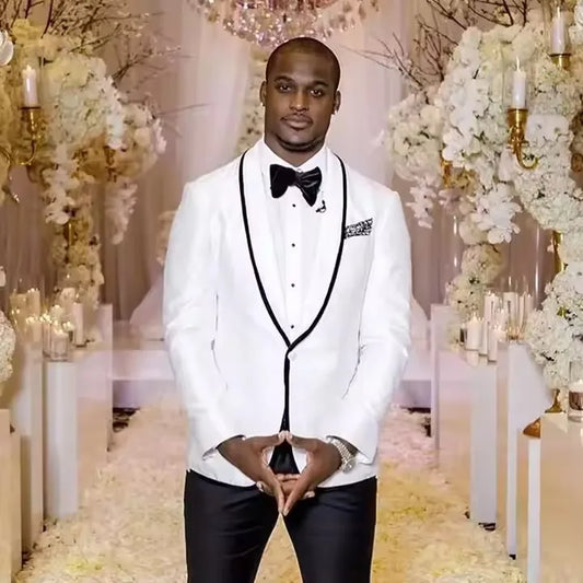 Custom Made Men's Wedding Tuxedo Elevate your formal attire with this stylish two-piece tuxedo, featuring elegant jacquard designs. Style: Slim fit for a modern and tailored appearance. Material: High-quality fabric with intricate jacquard patterns. Key Features: Two-Piece Set: Includes a jacket and pants, perfect for weddings, proms, and parties. Custom Made Options: Tailored for a perfect fit, accommodating various body types. Elegant Design: Ideal for making a statement on special occasions.