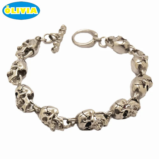 Intricate Skull Design: Featuring a series of detailed skull links, this bracelet showcases craftsmanship that appeals to those with a love for unique and edgy jewelry.