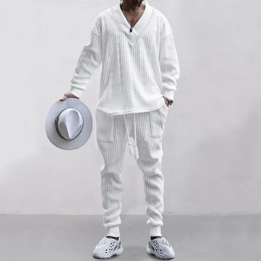 Men's Fashion Solid V Neck T-Shirt and Pant Set
