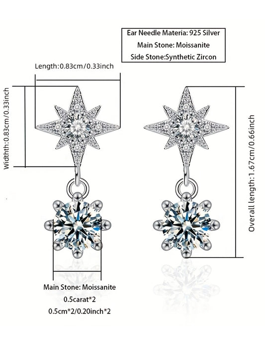 Product DescriptionS925 Sterling Silver Six-Pointed Star Drop Earrings with Moissanite TasselIlluminate your style with the S925 Sterling Silver Six-Pointed Star Drop Earrings. These exquisite earrings feature a stunning design that combines elegance and modern flair, making them perfect for any occasion.Key Features:
