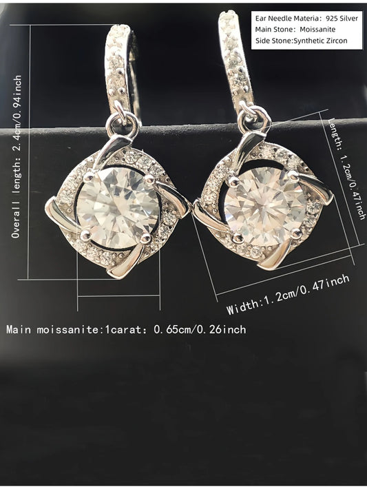Stunning 1ct Moissanite Stones: Each earring features a brilliant 1-carat moissanite diamond, celebrated for its exceptional sparkle and clarity, providing a luxurious look.