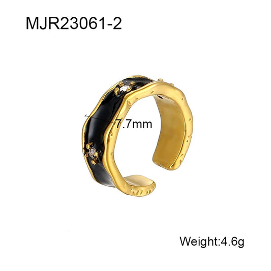 Hot Sale Gold Plating Smooth Irregular Lines Band Rings, Delicate Titanium High Polished Textured Finger Enamel Rings