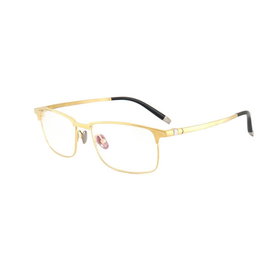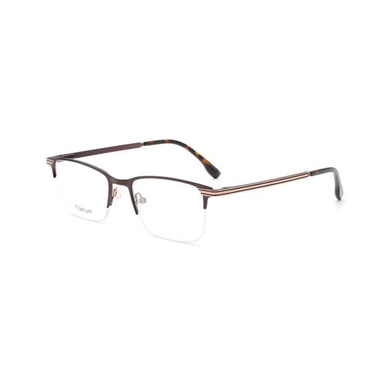 Experience modern elegance with these half-rim titanium eyeglasses, combining durability and sleek design. Perfect for a refined look and everyday comfort, these eyeglasses are the ideal choice for style and practicality.
