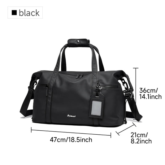 Sleek Design: This duffel bag features a modern, all-black aesthetic that pairs well with any outfit, making it suitable for gym sessions, weekend trips, or daily commutes.