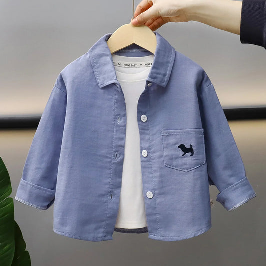 Design: Embroidered lapel with a cute dog motif, adding a playful touch.
