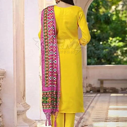 Pakistan Style Dresses - New Design Lawn Shalwar Kameez for Ladies Discover a vibrant and stylish addition to your wardrobe with this beautifully crafted shalwar kameez set. Features: Design: Showcases a bright yellow shirt adorned with intricate patterns, complemented by a stunning dupatta featuring colorful motifs. Material: Made from high-quality lawn fabric, ensuring breathability and comfort, perfect for warm weather. Style: The set includes a tailored trouser that enhances the overall silhouette and completes the look. Occasion: Ideal for casual outings, festive occasions, or cultural events, making it a versatile choice for any occasion.