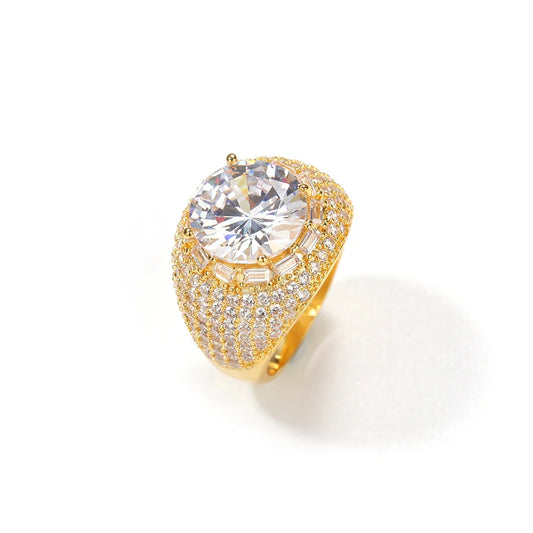 Trendy Gold Plated Hip Hop Style RingMake a statement with our Trendy Gold Plated Hip Hop Style Ring, designed for both men and women. This eye-catching ring features a stunning zircon gemstone and geometric accents, perfect for engagements or as a stylish gift.Key Features: