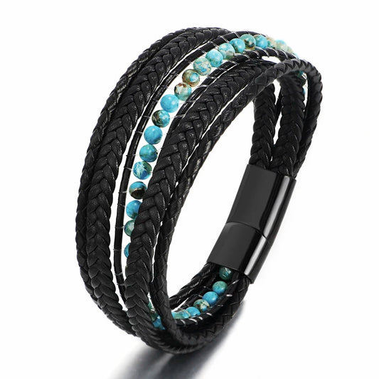 Product DescriptionMen's Popular Personalized Wood Stone Stainless Steel Leather BraceletElevate your style with this trendy men's bracelet that beautifully blends natural elements with modern design. Featuring a combination of wood and stone beads, along with durable stainless steel accents, this personalized piece is perfect for the contemporary man.Key Features:
