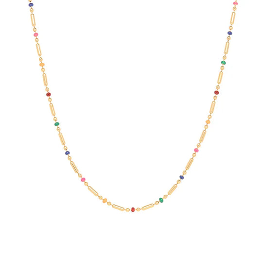 Wholesale Colorful Rainbow Chain Necklace, Enamel Bohemian Tarnish-Free Chain, Stainless Steel 18K Gold, Waterproof, No Fading