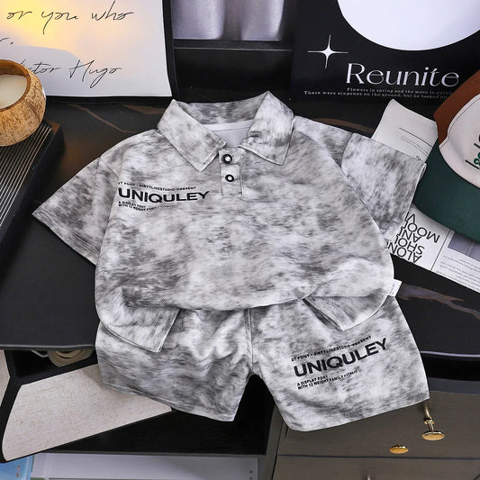 This stylish two-piece set is designed for boys, combining a trendy look with comfort.