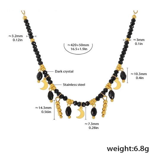 Luxury Black Crystal Stainless Steel Tassel Moon Choker Necklaces, Mysterious Dark Queen Jewelry for Women, Party Jewelry Gifts