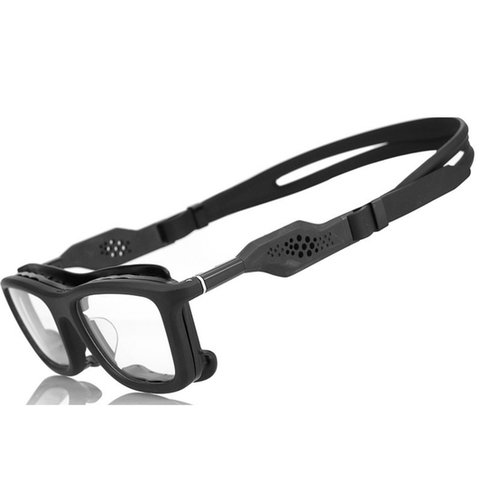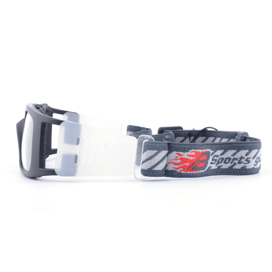 MCROONS sunglasses feature a robust wraparound design with a matte black frame that exudes a sleek and sporty aesthetic. The clear lenses provide excellent visibility and protection. Enhanced with a comfortable strap in gray, they are well-suited for active sports and outdoor adventures. Their secure fit and lightweight construction make them an ideal choice for individuals seeking dependable eyewear for high-energy activities.
