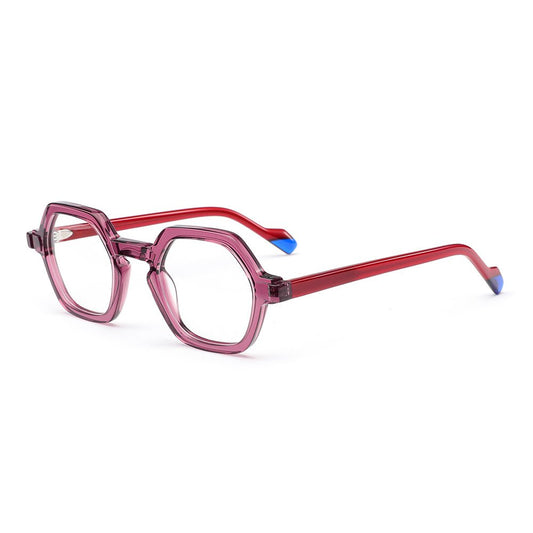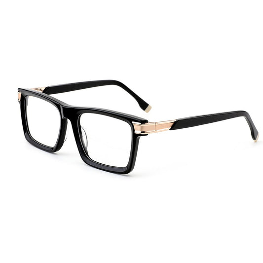 MCRRONS glasses feature a stylish, chunky frame with a unique angular design, ideal for both prescription lenses and fashion eyewear. The combination of modern aesthetics and classic elements makes them suitable for various occasions. They are lightweight and comfortable, with subtle detailing on the temples that adds a touch of elegance. Perfect for those looking to make a statement while enjoying functionality.