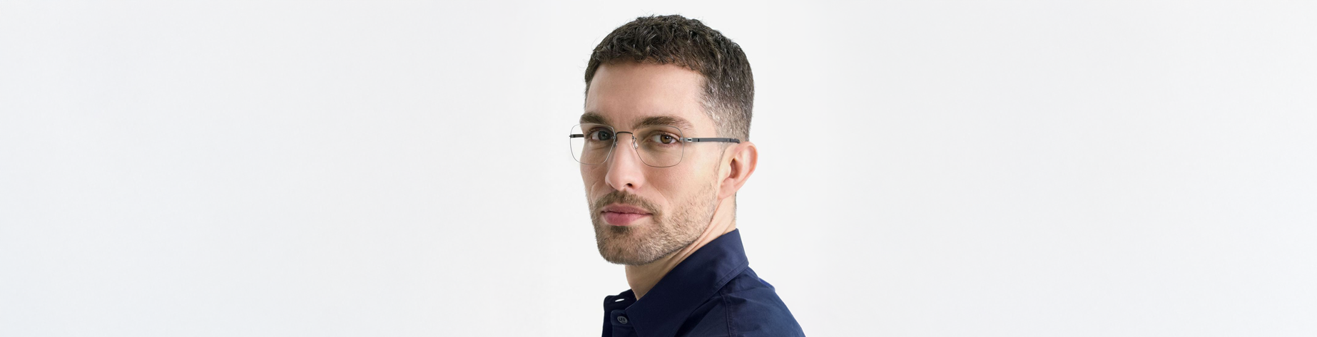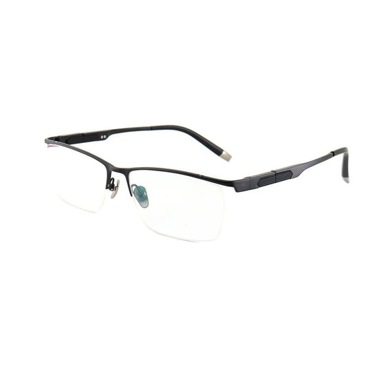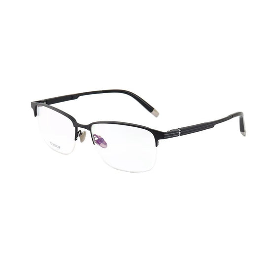Experience modern elegance with these half-rim titanium eyeglasses, combining durability and sleek design. Perfect for a refined look and everyday comfort, these eyeglasses are the ideal choice for style and practicality.