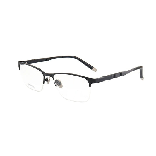 Elevate your style with our High-Quality MCROONS Optical Glasses. Crafted from premium titanium, these eyeglasses combine durability with a lightweight feel, making them perfect for daily wear. The sleek half-frame design exudes sophistication, ideal for professional settings. With a modern aesthetic and comfortable fit, these lunettes de luxe are designed for the discerning man who values both function and fashion. Enhance your vision and make a statement with these elegant eyeglasses.