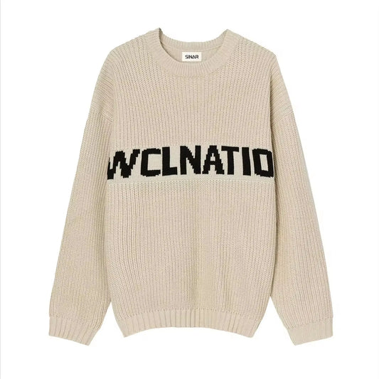 Custom LOGO Men's Sweater Casual Jacquard Pattern Pullover Knitwear Winter Crew Neck Loose Oversized Jumper Knitted Sweater Men