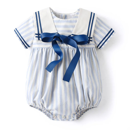 Baby Bubble Romper - Custom Striped Onesie with Sailor Collar