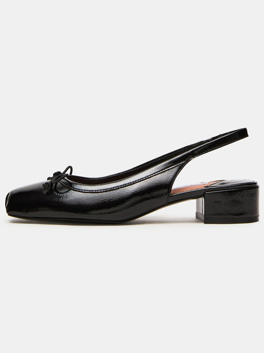 Women Black Patent Leather Slingback Pumps Bow Accent Block Heel Luxury Office Wedding Party Dress Shoes Comfort Wholesale