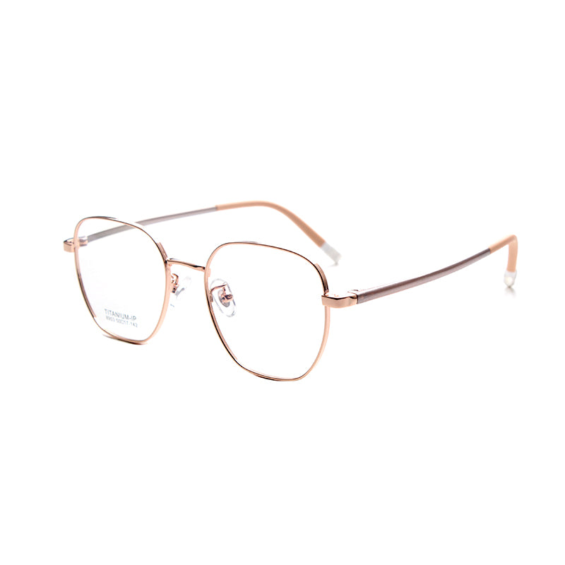 MCROONS Light Rose Gold Geometric Glasses showcase a stYlish blend of elegance and modernitY. The frame is crafted from lightweight metal in a soft rose gold hue, making them comfortable for all-daY wear. The unique geometric shape adds a fashionable edge, while the soft pink temples provide a gentle contrast. With clear lenses, these glasses are ideal for prescription use or as a chic accessorY. Perfect for elevating anY outfit, theY're suitable for both casual and professional settings, making them a versatile addition to Your eYewear collection.