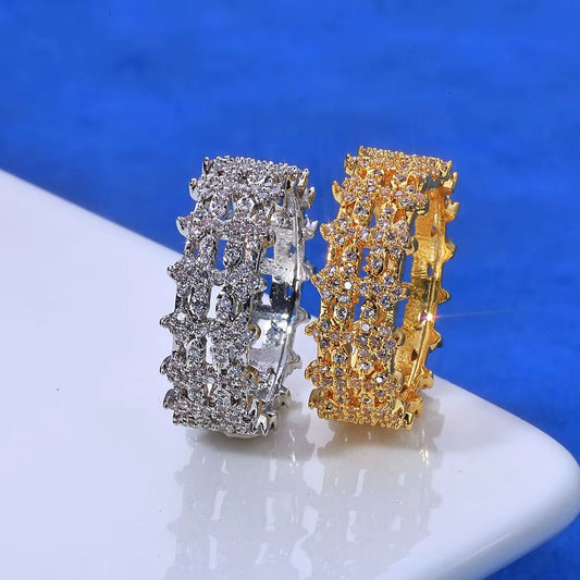 New Arrival 8mm Double Row Cross Ring 925 Silver White VVS Moissanite Iced Bling Design Women's Fine Jewelry