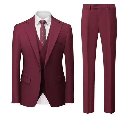 Three-Piece Ensemble: Comes with a jacket, vest, and trousers for a complete outfit.