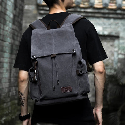 Introducing the Vintage Canvas Backpack, a perfect blend of classic style and modern functionality. This backpack is ideal for students, travelers, and anyone who appreciates a timeless aesthetic.Key Features: Classic Design: Crafted from durable canvas with leather accents, this backpack exudes a vintage charm that complements any outfit and setting. Spacious Storage: Multiple compartments, including a roomy main pocket and side pockets, provide ample space for books, laptops, and everyday essentials. Durable Construction: Made from high-quality materials, it offers long-lasting durability, making it suitable for daily use and outdoor adventures. Comfortable Fit: Padded shoulder straps and a cushioned back panel ensure comfort during extended wear, perfect for daily commutes or weekend trips.