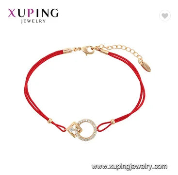 Add a touch of elegance to your jewelry collection with our Handmade 18K Gold Plated Red Rope Bracelet from Xuping. This stylish bracelet features a striking design that beautifully combines gold plating with a vibrant red rope, perfect for women seeking a unique accessory.