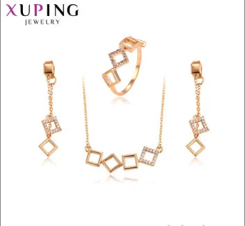 Celebrate your special moments with our New Style Personalized Square Shaped Three-Piece Wedding Jewelry Set. This exquisite set includes a stunning necklace, earrings, and a ring, designed to enhance your elegance on your big day.