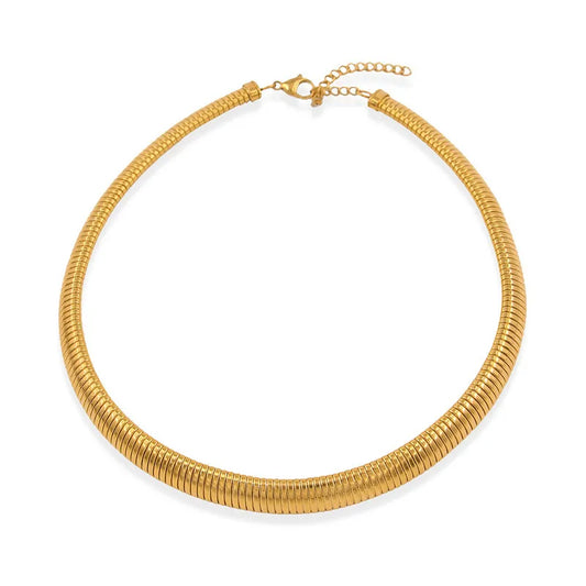 Make a bold statement with our Elegant Multi-Layer Choker Necklace. This chic piece features intertwined gold strands that beautifully frame your neckline.
