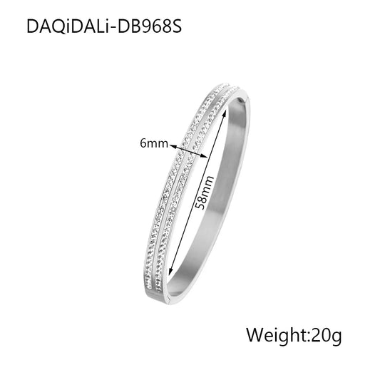 High-End Fashionable Women's Stainless Steel Bracelet, Thin Crystal Full Zircon Bangles, Accessory PVD 18K Gold Plated Bangle