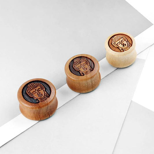 Enhance your ear jewelry collection with our Solid Wood Auricle Expanders, featuring a unique Buddha head design!