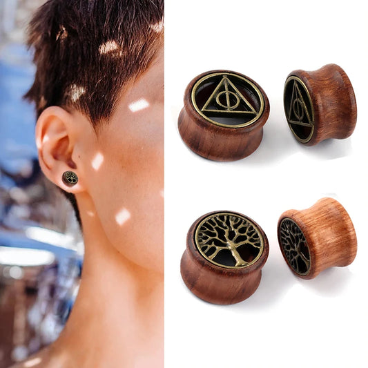 Zesen Lot Wood Ear Plugs & Tunnel Expanders, Deathly Hallows Piercing Earrings, Stretcher Saddle Body Jewelry for Weddings