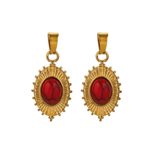 Elevate your accessory collection with our Elegant Gemstone Drop Earrings. These stunning earrings feature a beautiful gemstone set in an intricate gold-plated design, perfect for adding a touch of sophistication to any outfit.
