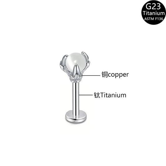 Elegant Dragon Claw Labret Lip Ring with Opalite Center Surgical Steel Fits Cartilage & Helix Earrings Perfect for Casual Attire