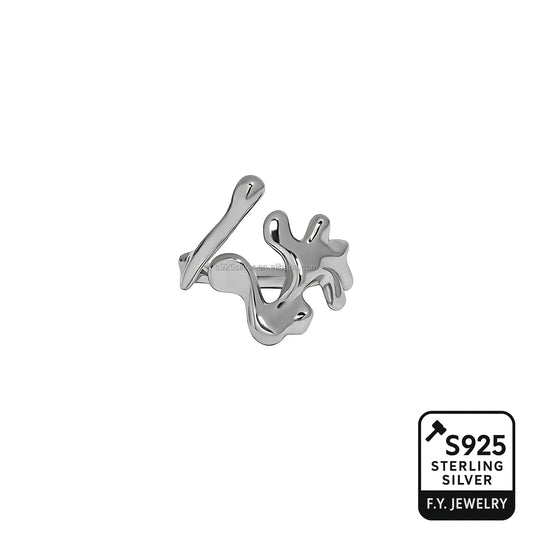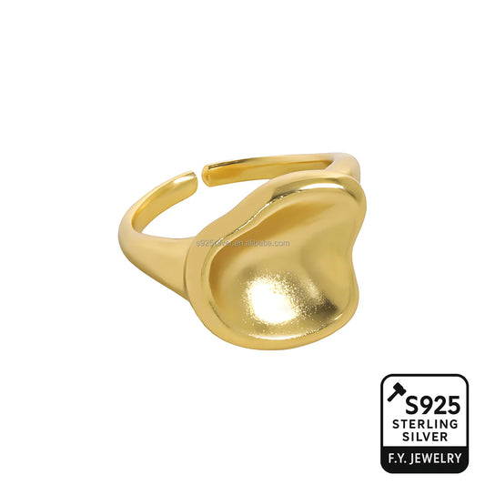 Gold Plated Jewelry Abstract Irregular Shape 925 Sterling Silver Statement Open Ring for Women
